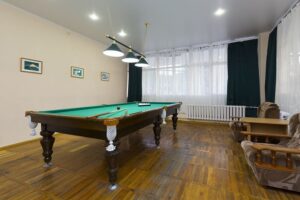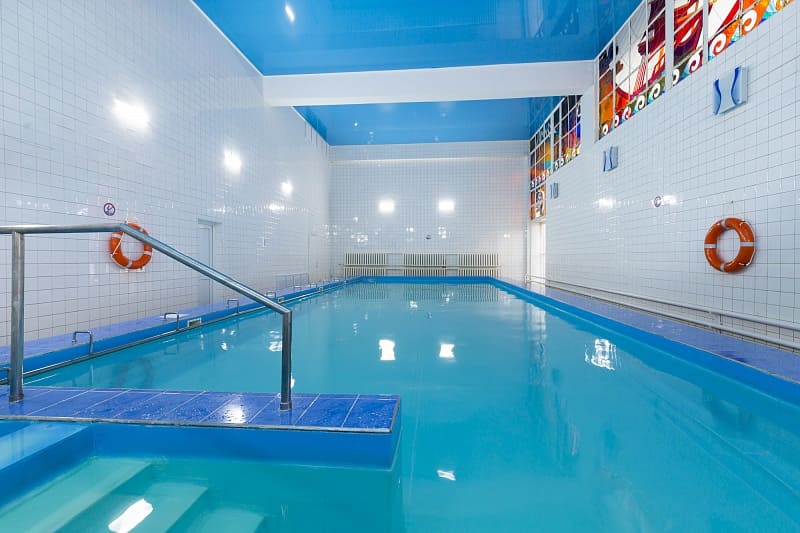 В санатории есть крытый бассейн, который входит в стоимость тарифа с лечением. Его размеры составляют 16 на 9 метров. Вода в бассейне пресная, подогревается и доступен для посещения круглый год.