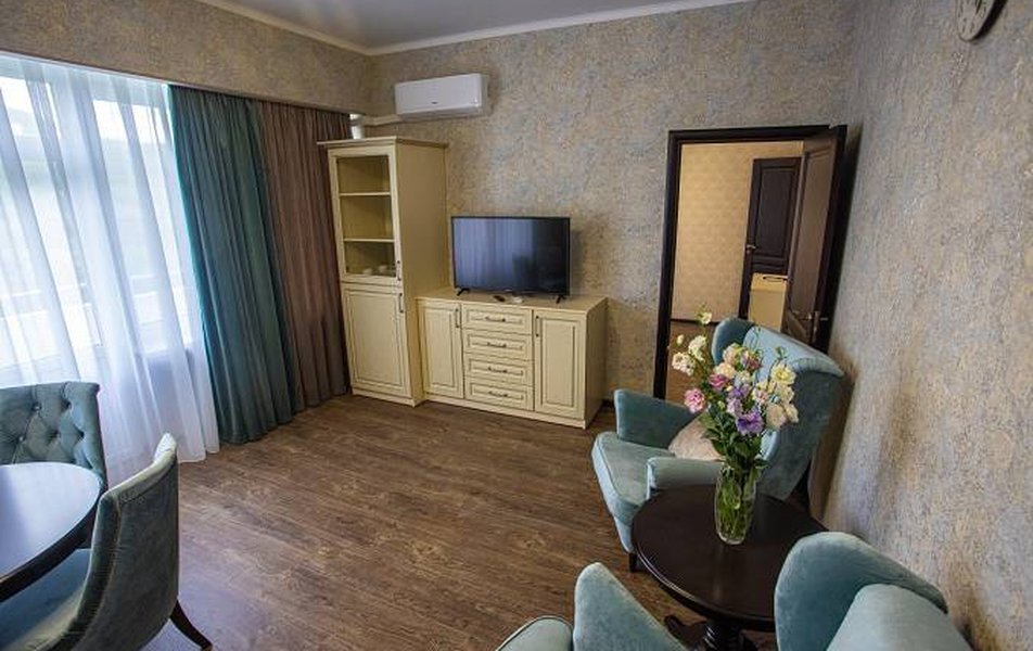 В санатории функционирует детская комната с воспитателем, а также имеется оборудованная игровая площадка на свежем воздухе. Для детей организуются разнообразные развлекательные мероприятия, включая конкурсы, интерактивные игры и квесты. Ежедневно для юных гостей показывают мультфильмы и семейные фильмы. В санатории предусмотрено специальное детское меню, а в обеденном зале установлены детские стульчики.