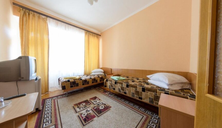 Однокомнатный номер с видом на город. В номере есть раскладушка для дополнительного места. Основные места — два. В номере есть мебель: вешалка, зеркало, односпальные кровати с прикроватными тумбочками, стол, стулья и шкаф. Также в номере есть мини-холодильник и телевизор. Санузел с душем.